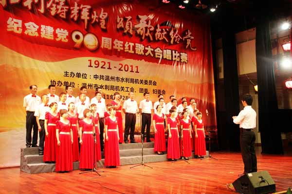 2011年6月28日,溫州市水利局在市青少年活動(dòng)中心二樓觀演廳舉辦了“水利鑄輝煌,頌歌獻(xiàn)給黨”為主題的紀(jì)念建黨九十周年紅歌大合唱比賽決賽,局領(lǐng)導(dǎo)出席了晚會(huì)并擔(dān)當(dāng)評(píng)委。