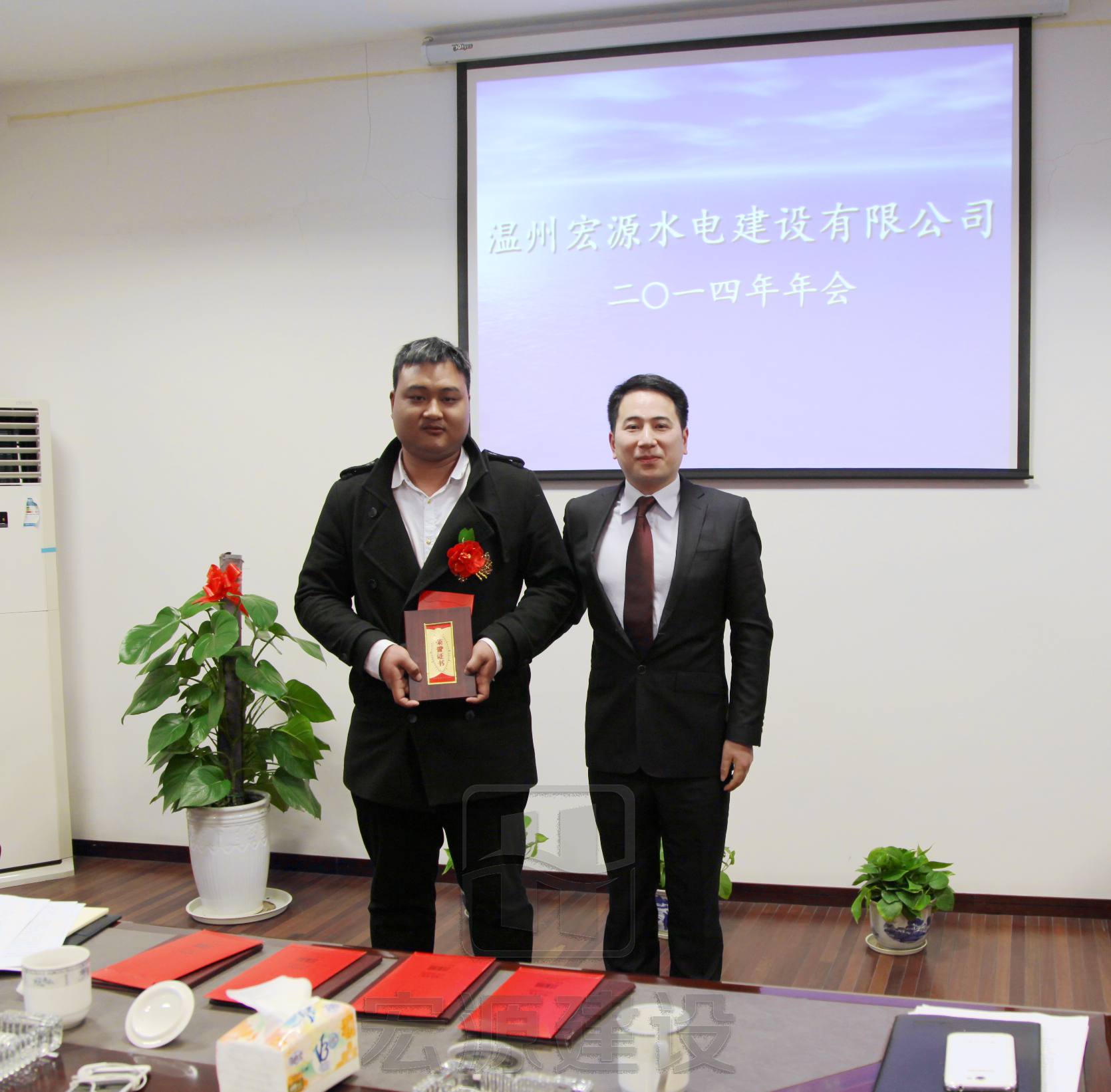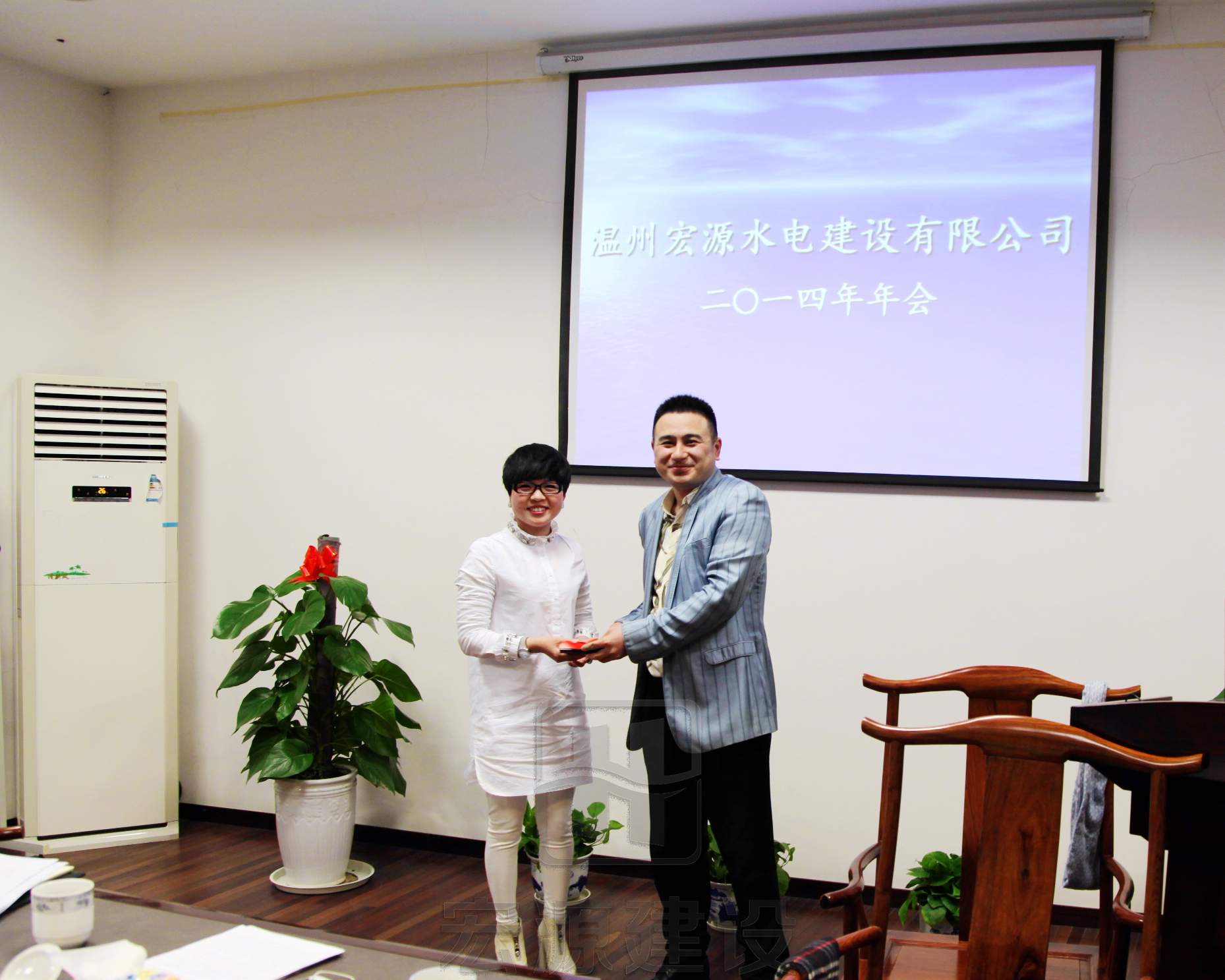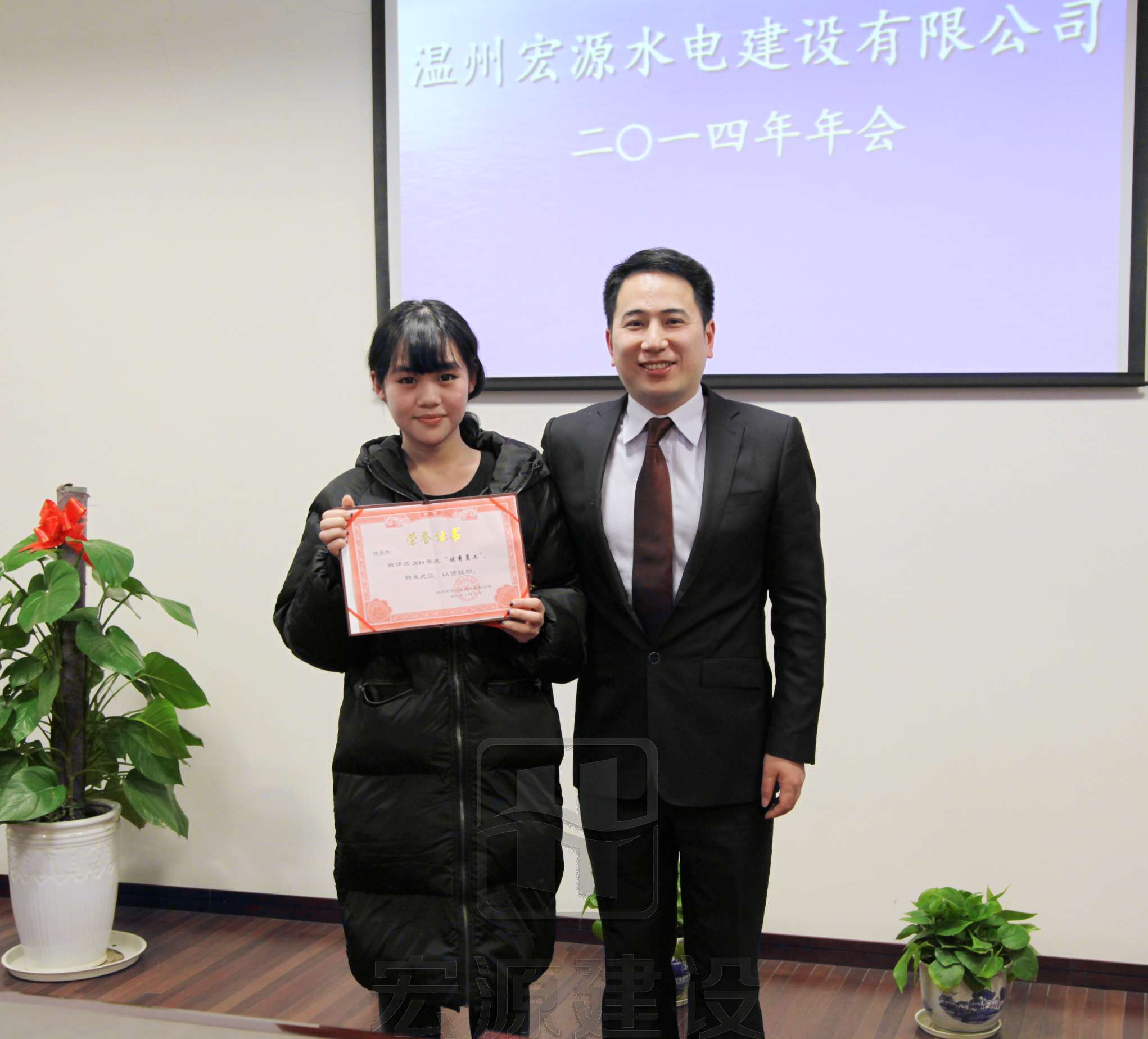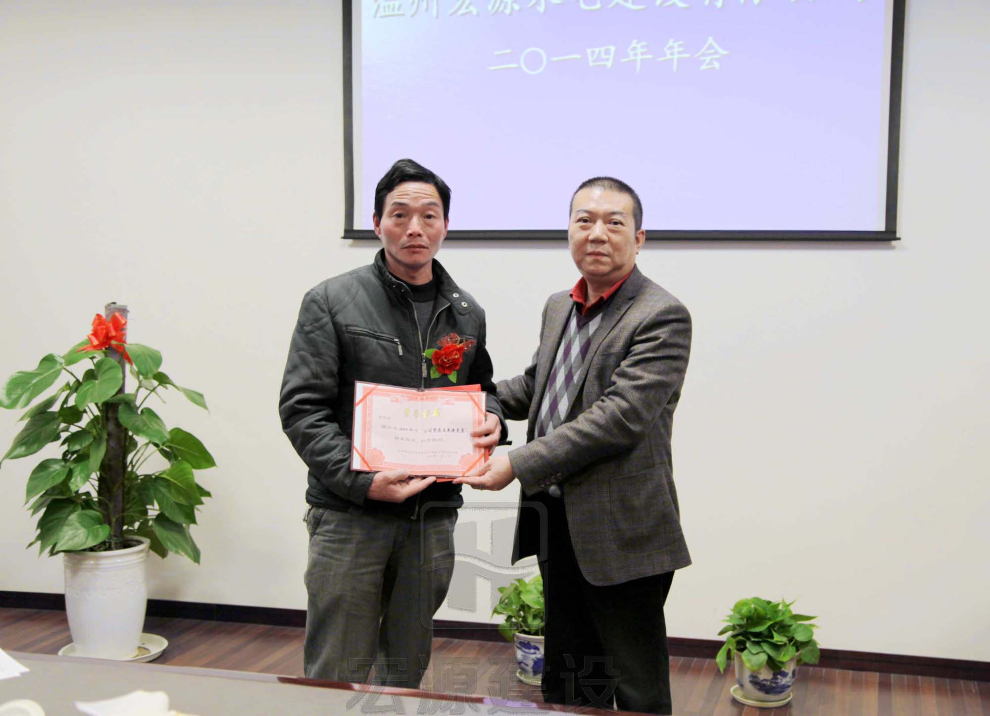 在年會上,首先,先進部門和先進項目部代表及先進員工代表分別發(fā)表了講話;接著,總經(jīng)理林勇軍做了2014年度工作報告,董事長林建勇發(fā)表新年致辭。年會上總經(jīng)理林勇軍對本年度的工作表示滿意,對公司全體員工這一年的努力辛苦表示感謝,對全體員工這一年中表現(xiàn)出來的相互團結和協(xié)作表示由衷的感謝。最后,由黨總支部書記、副董事長黃歲榮宣讀了先進名單,并對獲得2014年度先進集體及人個進行了表彰。