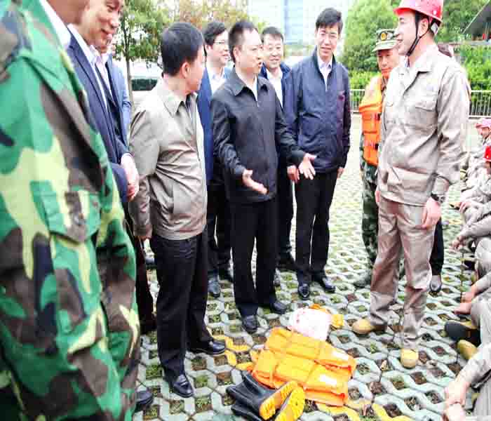2015年4月26日上午九點(diǎn),水利部副部長李國英一行到市人民大會(huì)堂(西側(cè))小廣場檢查溫州市防汛搶險(xiǎn)隊(duì)伍建設(shè)情況。溫州市防汛搶險(xiǎn)支隊(duì)成立于2005年,下轄施工大隊(duì)和突擊大隊(duì),其中我公司作為施工大隊(duì)是一支水利工程搶險(xiǎn)為主的專業(yè)化快速搶險(xiǎn)隊(duì)伍,突擊大隊(duì)由武警官兵組成。李國英對(duì)溫州的防汛搶險(xiǎn)隊(duì)伍建設(shè)表示肯定,他說,“感謝你們在搶險(xiǎn)中所作的貢獻(xiàn),未來的搶險(xiǎn)防汛工作還有很多、任務(wù)也很重,希望大家在將來的防汛搶險(xiǎn)工作中,真正能夠做到呼之即來、來之能戰(zhàn)、戰(zhàn)之能勝,用嚴(yán)明的紀(jì)律、精湛的技術(shù)、精良的裝備、過硬的作風(fēng),來確保防汛搶險(xiǎn)的勝利,保證人民群眾的生命財(cái)產(chǎn)安全?!惫究偨?jīng)理林勇軍作為防汛搶險(xiǎn)施工大隊(duì)大隊(duì)長向李部長一行匯報(bào)了我們搶險(xiǎn)大隊(duì)基本情況,隊(duì)員陳和琪將防汛搶險(xiǎn)作業(yè)裝備一一展示給李部長,得到了李部長一行的肯定與贊揚(yáng)。最后李國英副部長與防汛搶險(xiǎn)隊(duì)員們親切合影,留下了美好的瞬間!