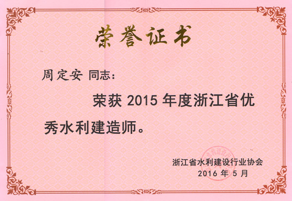 【喜報(bào)】陳旺、周定安榮獲浙江省優(yōu)秀水利建造師稱號(hào)