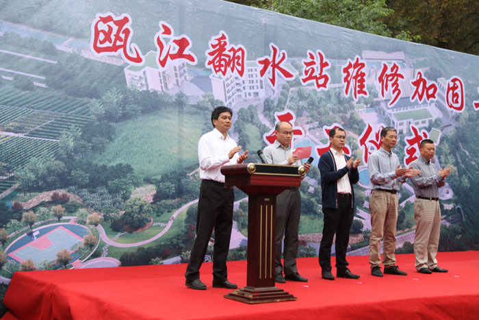 2016年10月11日上午,由我公司承建的甌江翻水站維修加固工程舉行了簡(jiǎn)樸而隆重的開工儀式。甌江翻水站維修加固工程指揮部常務(wù)副指揮、市水利局局長(zhǎng)項(xiàng)國(guó)生致辭,市委常委、甌江翻水站維修加固工程總指揮任玉明宣布開工。我公司總經(jīng)理林勇軍代表施工單位做了表態(tài)發(fā)言。