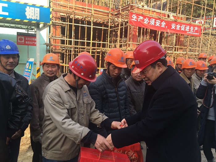項(xiàng)國生局長代表局黨組對項(xiàng)目部全體人員表示春節(jié)慰問和新年祝賀,并檢查了現(xiàn)場施工進(jìn)展情況,肯定了項(xiàng)目部的安全生產(chǎn)工作,提出在春節(jié)期間繼續(xù)做好安全工作的要求。