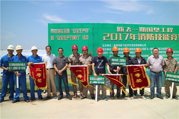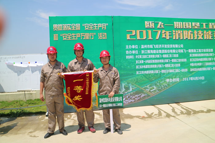 為貫徹落實(shí)2017年6月份全國“安全生產(chǎn)月”和“安全生產(chǎn)萬里行”活動(dòng),響應(yīng)公司“安全生產(chǎn)月”活動(dòng),進(jìn)一步促進(jìn)廣大參建人員的安全意識(shí),提高參建人員安全消防知識(shí)和技能,確保工程施工人員和設(shè)備的安全。由甌飛經(jīng)濟(jì)開發(fā)投資有限公司主辦,浙江圍海建設(shè)公司甌飛一期圍墾工程Ⅱ標(biāo)項(xiàng)目部協(xié)辦的“甌飛一期工程(北片)安全消防知識(shí)和技能競(jìng)賽”的活動(dòng),于6月30日10點(diǎn)在經(jīng)投公司后方保障基地(船員培訓(xùn)基地)舉行。