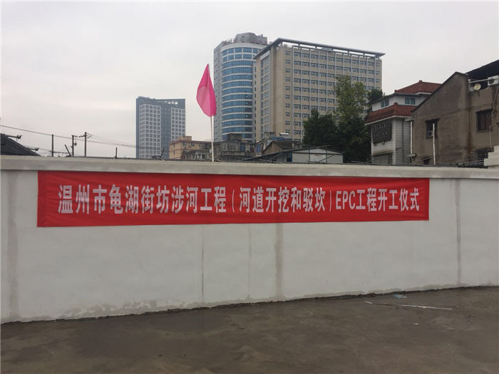 2017年12月29日上午9時,由我公司承建的溫州市龜湖街坊涉河工程(河道開挖及駁坎)在項(xiàng)目經(jīng)理部舉行了開工儀式,溫州市名城建設(shè)開發(fā)有限公司副總經(jīng)理孔朋與我公司總經(jīng)理林勇軍共同宣布工程正式開工。