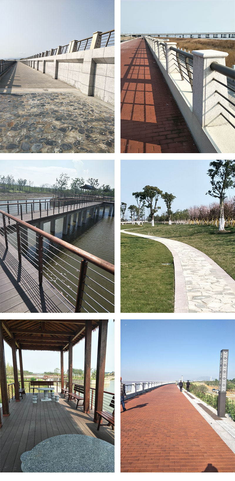 該工程是集園林綠化、園林景觀、房屋建筑、橋梁、水利建筑等為一體的綜合性建設(shè)項目。具體施工項目有:駁岸防護(hù)、堤頂欄桿及鋪裝、地面綠化、水體綠化、園路與廣場鋪裝工程、園林小品、園林給排水、園林用電、茶室、鄰水茶樓、管理房、公廁、石拱橋、人行橋、入口人行橋等21個分部工程,一個單位工程。實際施工過程涉及房建、橋梁、園林綠化、市政、水利等多專業(yè)技術(shù)。但在業(yè)主、監(jiān)理、設(shè)計等參建單位的支持下,在公司和項目部共同努力下,較好地完成了施工任務(wù),可喜可賀。