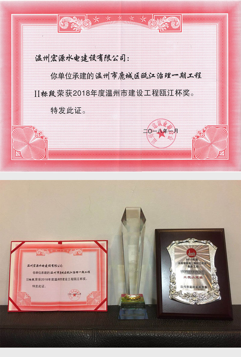 日前,從溫州市建筑業(yè)企業(yè)聯(lián)合會傳來喜訊(溫市建聯(lián)質(zhì)[2018]6號文件),由溫州宏源水電建設(shè)有限公司承建的溫州市鹿城區(qū)甌江治理一期II標(biāo)段建設(shè)工程喜獲2018年度溫州市建設(shè)工程“甌江杯”(優(yōu)質(zhì)工程)獎。這是繼2016年以來,我公司再次榮獲的 “甌江杯”獎項(xiàng)。我公司全體員工一直把“鍛造精品工程,鑄就水利品牌”作為工程建設(shè)的目標(biāo),此次再獲殊榮,我們宏源人信心滿滿,將再接再厲以更多更好的精品工程、優(yōu)質(zhì)工程奉獻(xiàn)給溫州的水利建設(shè),造福溫州人民,為溫州的經(jīng)濟(jì)建設(shè)添磚加瓦。