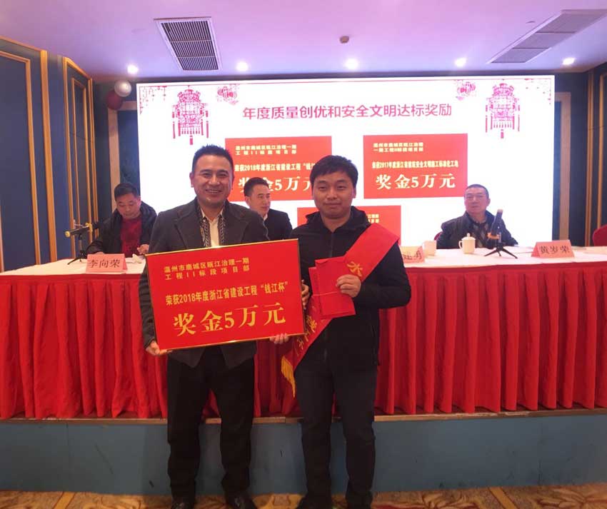年會上,總經(jīng)理林勇軍做了題為《鞏固主業(yè)水利水電市場 拓展大土木建筑領(lǐng)域 打造百年品牌綜合建設(shè)承包商》的2018年度工作報告,董事長林建勇發(fā)表新年講話。各分管副總也做了工作總結(jié)。年會上總經(jīng)理林勇軍對本年度的工作表示滿意,對公司全體員工這一年的努力辛苦表示感謝,對全體員工這一年中表現(xiàn)出來的相互團(tuán)結(jié)和協(xié)作表示由衷的感謝。尤其是今年公司捧得了“錢江杯”,也是公司60周年的一份厚禮,更是填補(bǔ)了公司的歷史空白。最后,黨總支部書記、副董事長黃歲榮和李副總宣讀了先進(jìn)名單,并對獲得2018年度先進(jìn)集體、個人及質(zhì)量創(chuàng)優(yōu)、文明標(biāo)化進(jìn)行了表彰,激勵了廣大職工爭優(yōu)創(chuàng)新的干勁。