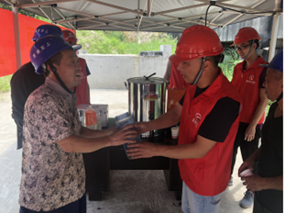 眼下正值酷暑季節(jié),高溫持續(xù),我公司承建的趙山渡引水工程渡槽除險加固及檢修應(yīng)急通道工程Ⅲ標(biāo)項目施工現(xiàn)場的工人們頂著烈日正在抓緊施工趕進度。為了讓現(xiàn)場施工人員在炎炎夏日消暑解渴,讓工人們能嘗到酷暑里的一絲涼意,7月26日,溫州宏源水電建設(shè)有限公司黨總支部聯(lián)合浙江珊溪水利水電開發(fā)股份有限公司黨委, 在項目施工現(xiàn)場開展“夏送清涼”送茯茶活動,讓工人們在辛苦的工作之外感受到了黨組織的關(guān)懷。