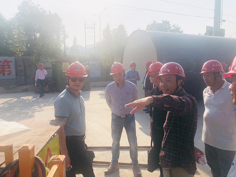 2019.10.21下午,市公用集團總工鄭春華攜同珊溪股份公司董事長胡勁、總經(jīng)理滕玉楠蒞臨我公司承建的趙山渡引水工程Ⅲ標現(xiàn)場督查指導并視察頂管工程進展情況,公司總經(jīng)理林勇軍、總工李向榮及其他參建各方負責人陪同。本次視察對象主要為張染-固前倒虹吸工程,全長192.7m,其中頂管段長108.4m,管徑為D3020×36,采用泥水平衡頂管機方式施工。