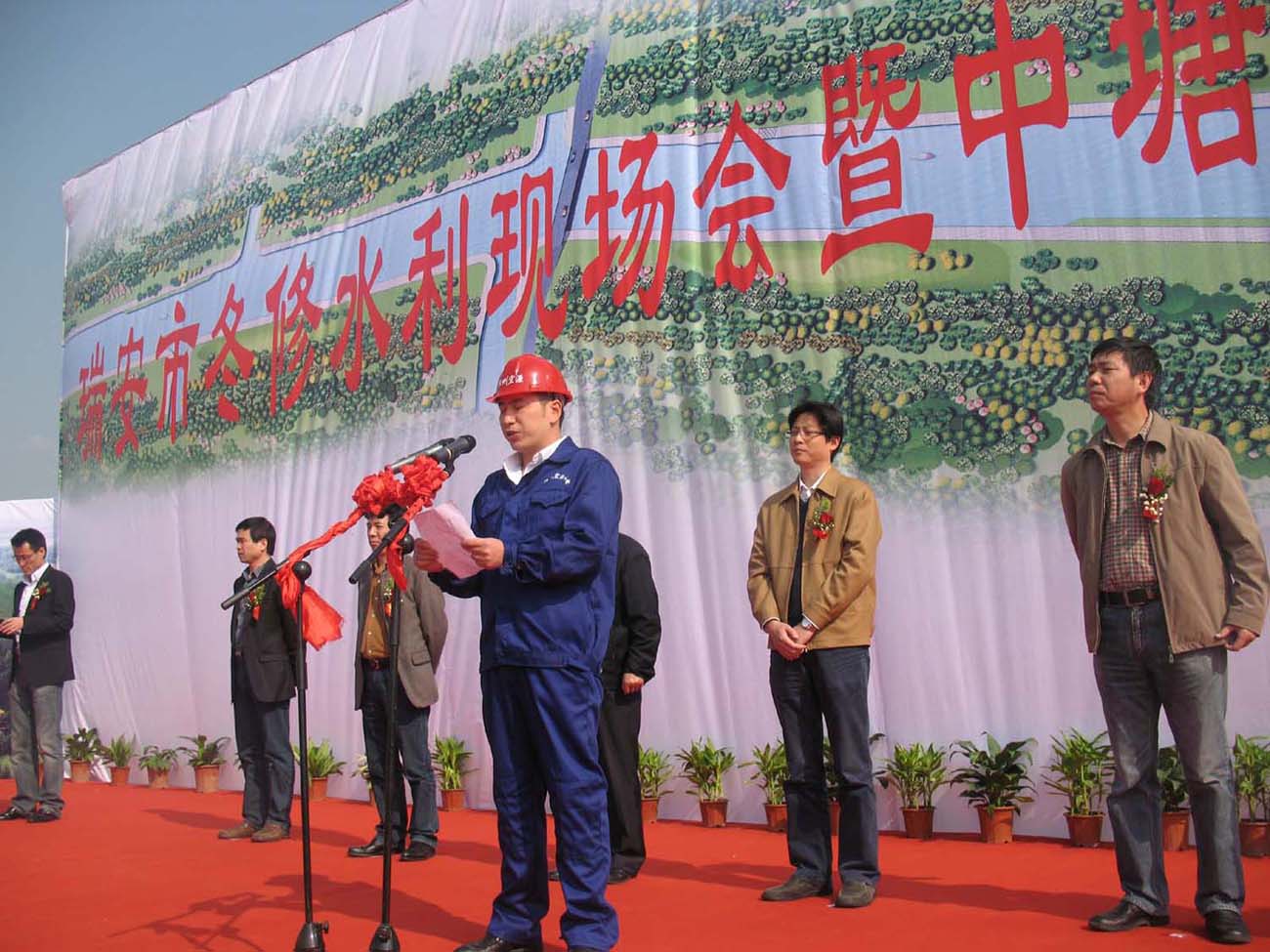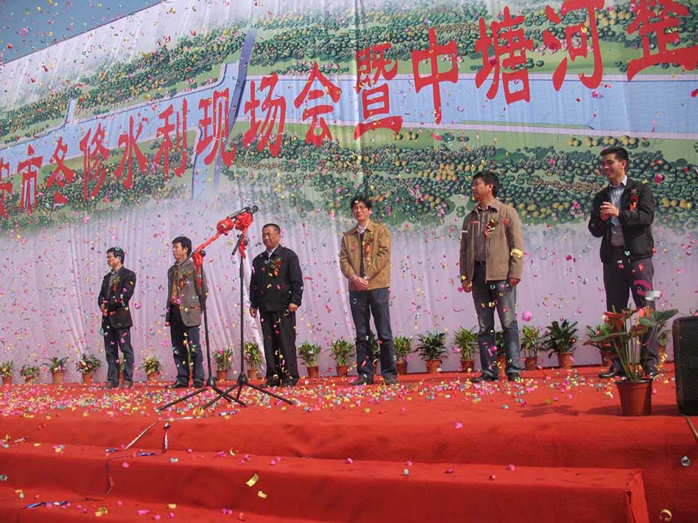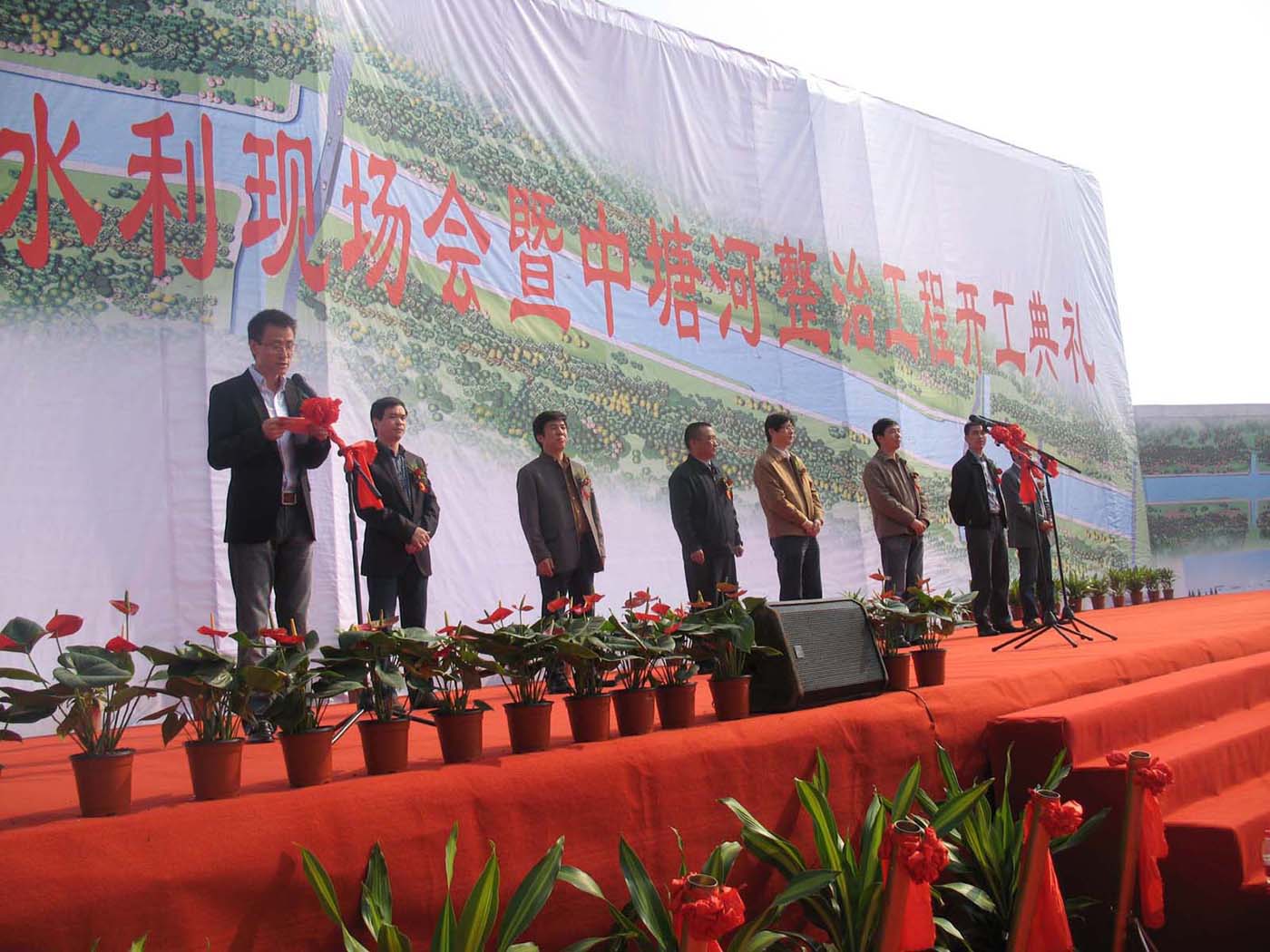 在震天的鞭炮聲中,在飛舞的彩花中,瑞安市中塘河整治一期工程(塘下段ⅰ標(biāo))正式開工。省水利廳領(lǐng)導(dǎo)熱情致辭,對(duì)瑞安市中塘河整治一期工程(塘下段ⅰ標(biāo))正式開工表示熱烈的祝賀!瑞安市副市長代表瑞安市政府作了熱情洋溢的講話。瑞安市水利局局長致歡迎辭。溫州市水利局領(lǐng)導(dǎo)致辭對(duì)工程的開工表示祝賀。溫州宏源水電建設(shè)有限公司總經(jīng)理代表瑞安市中塘河整治一期工程(塘下段ⅰ標(biāo))施工單位在儀式上表態(tài)發(fā)言。