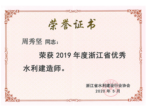 近日,從浙江省水利建設行業(yè)協(xié)會傳來喜訊,根據(jù)該協(xié)會5月12日發(fā)布的《關于表彰2019年度浙江省優(yōu)秀水利企業(yè)、浙江省優(yōu)秀水利企業(yè)家、浙江省優(yōu)秀水利建造師、浙江省優(yōu)秀水利總監(jiān)理工程師的通知》,我公司劉兆鋒、王寅、周秀堅三位同志榮獲“2019年度浙江省優(yōu)秀水利建造師”稱號。在此恭喜三位同志,也希望年輕的宏源人以他們?yōu)榘駱?,嚴格要求自己,積極提升業(yè)務水平,努力在自己的水利建設崗位上創(chuàng)造佳績。同時也希望三位同志再接再厲,與時俱進,以更加強烈的使命意識、責任意識和擔當意識迎接新的、更大的挑戰(zhàn),不斷攀登新目標,讓我們一起為水利建設行業(yè)的發(fā)展做出更大貢獻。