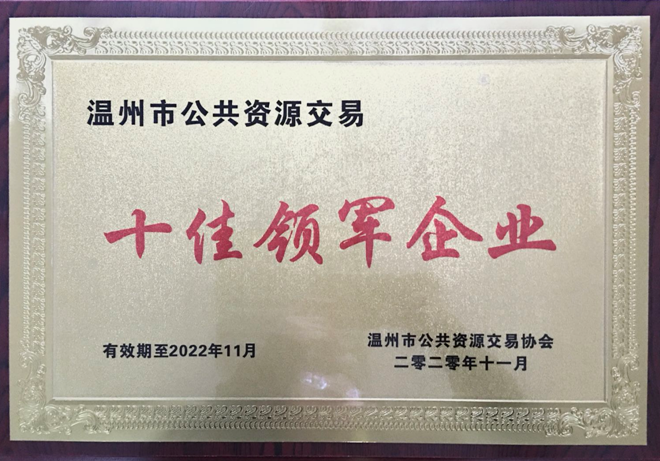 2020年11月20日,從溫州市公共資源交易協(xié)會表彰大會現(xiàn)場傳來喜訊,我公司在日前參加的溫州市公共資源交易“雙十佳”(十佳公共資源交易領(lǐng)軍企業(yè)、十佳公共資源交易明星企業(yè))評選活動中,榮膺“十佳領(lǐng)軍企業(yè)”稱號,受到通報表彰。我們將珍惜這份榮譽,不負眾望,繼續(xù)信守承諾,再接再厲,保持和發(fā)揚成績,繼續(xù)為我市公共資源交易的健康發(fā)展做出新的貢獻。