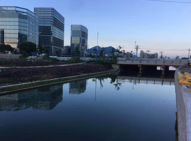 環(huán)商泄洪河道二期會展路以西(水利部分)工程位于溫州市濱江商務(wù)區(qū),河道防洪標(biāo)準(zhǔn)為50年一遇。該工程施工內(nèi)容主要包括河道開挖、護(hù)岸等。本工程的順利竣工驗收不僅增強(qiáng)了濱江商務(wù)區(qū)的的抗洪防汛能力同時也調(diào)節(jié)美化了周邊生態(tài)環(huán)境,并為下一步景觀綠化工程施工提供了基礎(chǔ)與保障。