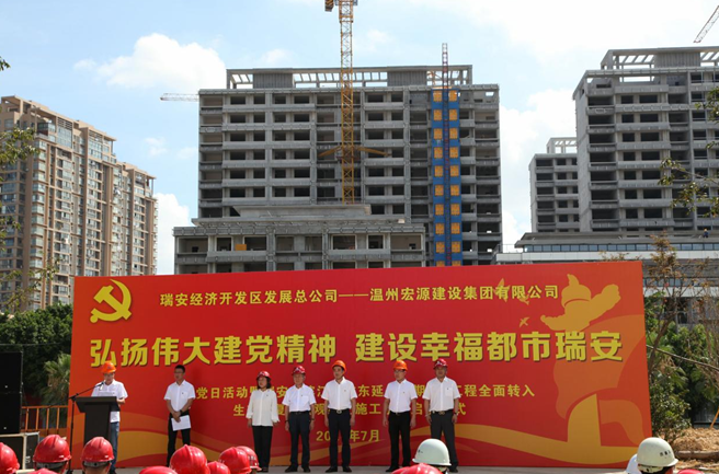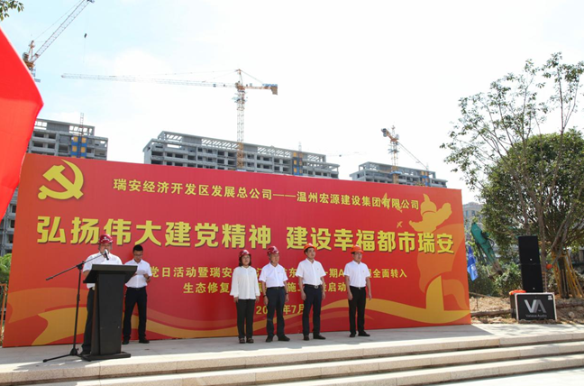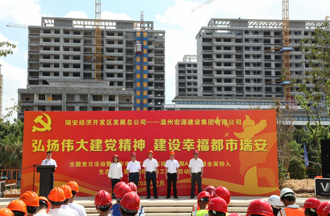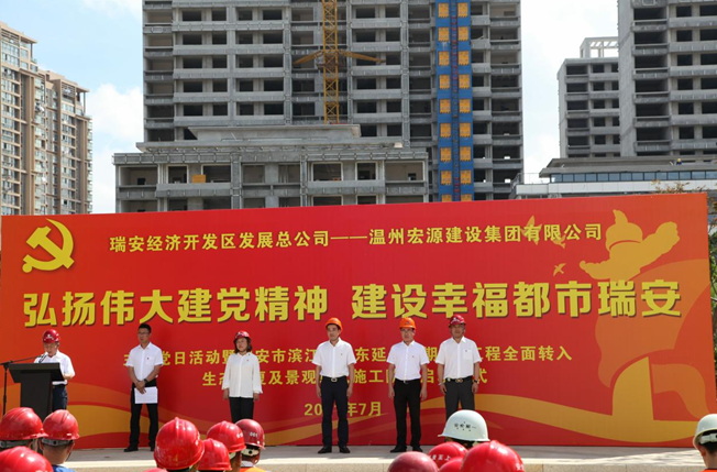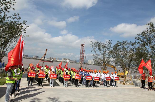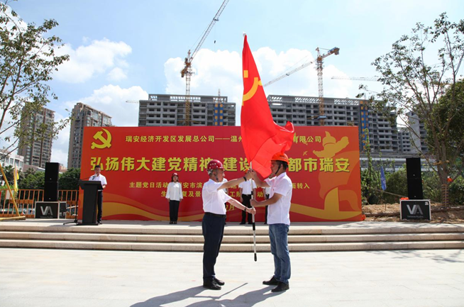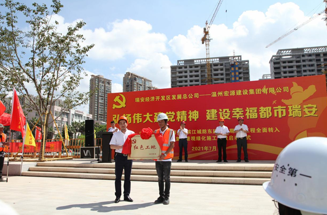 經開區(qū)黨委委員林上迪向項目部授予“紅色工地”牌匾