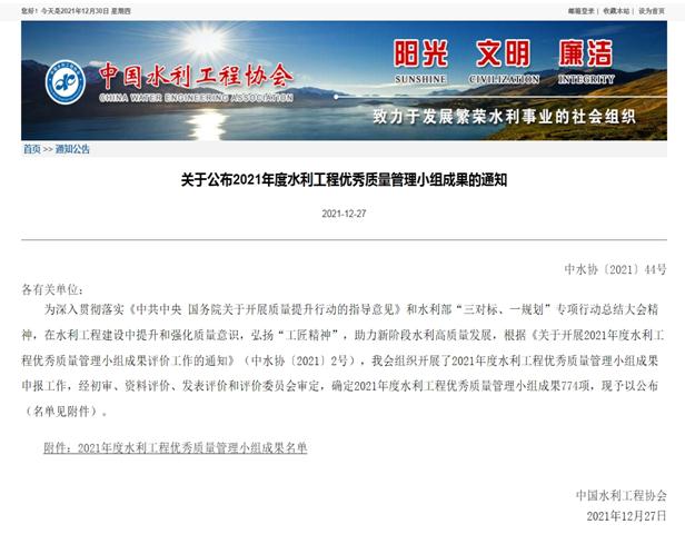 【喜報】熱烈慶祝我公司2個項目 榮獲2021年度水利工程優(yōu)秀質(zhì)量管理小組成果