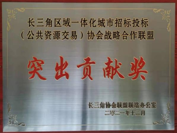【喜報(bào)】熱烈慶祝公司榮獲長(zhǎng)三角區(qū)域一體化城市招投標(biāo)(公共資源交易)協(xié)會(huì)戰(zhàn)略合作聯(lián)盟突出貢獻(xiàn)獎(jiǎng)