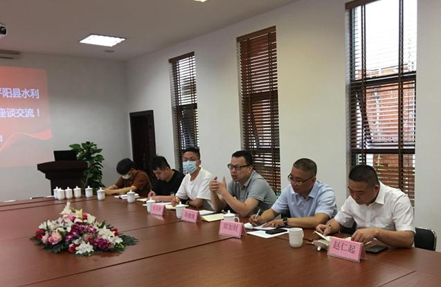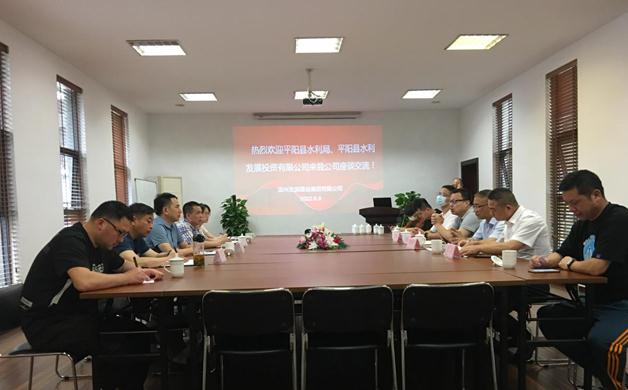 6月9日上午,平陽(yáng)縣水利局黨組成員周敏捷帶領(lǐng)平陽(yáng)縣水利發(fā)展投資有限公司董事長(zhǎng)趙仁起一行在溫州市水旱災(zāi)害防御中心副主任鄭加財(cái)?shù)呐阃碌轿夜揪推疥?yáng)縣縣級(jí)防汛搶險(xiǎn)隊(duì)伍建設(shè)進(jìn)行座談交流。公司總經(jīng)理林勇軍、總工兼副總經(jīng)理李向榮及副總經(jīng)理劉兆鋒等人員參加座談。