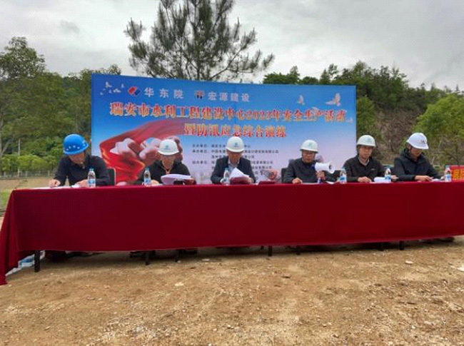 本次應(yīng)急演練以實戰(zhàn)演練形式進行,主要為防汛搶險、傷員救治、基坑強排、人員撤離等科目進行,參演人員以瑞安市林溪水庫加固改造提升工程(除險加固項目)工程總承包(EPC)項目部防汛方案應(yīng)急救援小組成員為主,各班組人員為輔,瑞安市林川鎮(zhèn)政府救援隊參演。本次演練目的是為提高瑞安市水建中心管轄的各在建項目部應(yīng)急救援小組搶險能力及施工作業(yè)人員的應(yīng)急反應(yīng)能力。