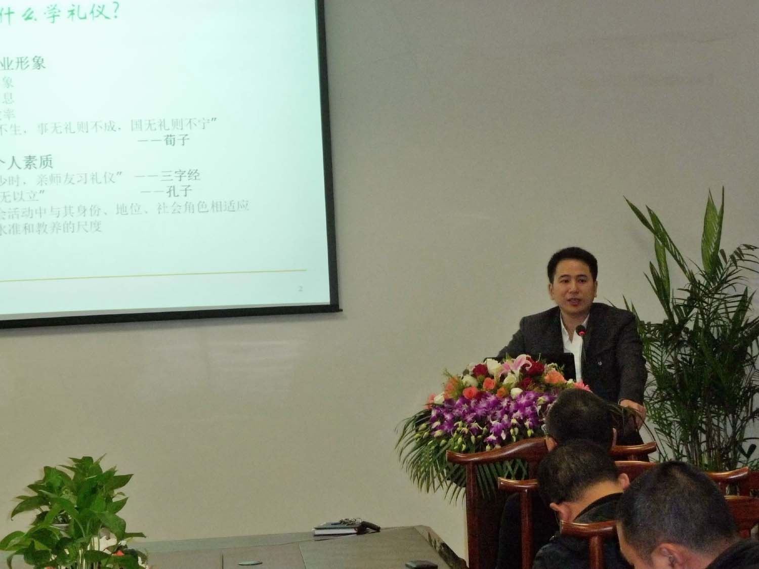 儀式結(jié)束,開始授課。本期的授課內(nèi)容為:總經(jīng)理林勇軍講授《基本禮儀》,副總經(jīng)理李向榮講授《標(biāo)準(zhǔn)化工地建設(shè)》,副總經(jīng)理兼總工程師楊鵬飛講授《施工組織設(shè)計(jì)》,工程部及質(zhì)安部經(jīng)理張李青暢談《我有一個(gè)夢想》,質(zhì)安部經(jīng)理助理朱肖講解《標(biāo)準(zhǔn)化工地示范手冊》,副董事長、黨總支部書記黃歲榮講授《如何做好一個(gè)管理者》。