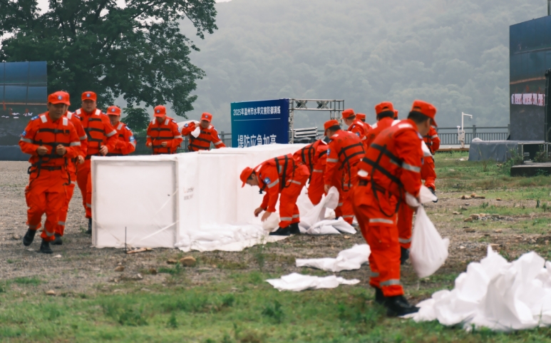 演練現(xiàn)場,隨著一聲令下,公司施工搶險大隊迅速進入戰(zhàn)斗狀態(tài)。隊員們身著統(tǒng)一的搶險服裝,攜帶專業(yè)搶險設(shè)備,奔赴模擬險情現(xiàn)場。此次演練中,搶險大隊承擔的科目是水利工程險情處置,重點演練使用裝配式擋水子堤應(yīng)對突發(fā)險情。