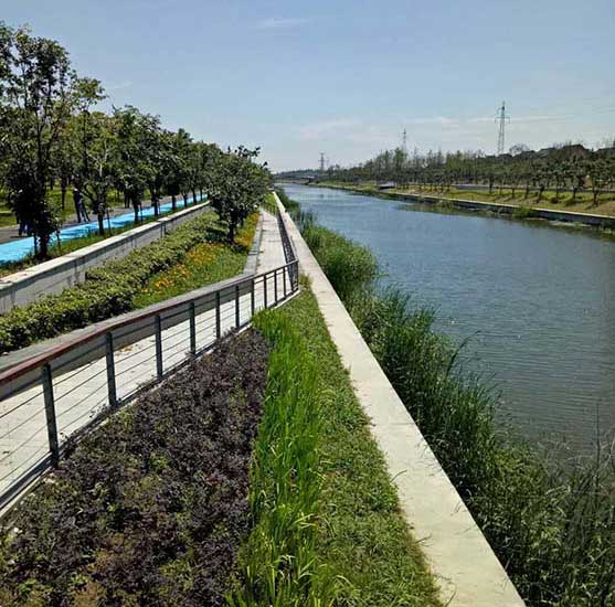 擴(kuò)大杭嘉湖南排工程(嘉興部分)洛塘河河道整治工程施工Ⅱ標(biāo)位于海寧市城區(qū),東起麻涇港,西至平陽堰港,本工程整治河道4.24km,新建護(hù)岸8.3km,以及配套的附屬設(shè)施,總造價(jià)5900多萬元。洛塘河河道工程防洪標(biāo)準(zhǔn)為50年一遇,堤防級別為3級,常水位1.2m。工程完成后將與與已建的老洛塘河、長山河連成一片,并將與城市景觀綠化融為一體,形成河道兩岸景觀帶。