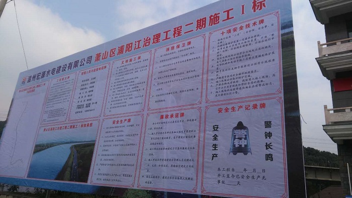 2017年立春剛過,咋暖還寒的浦陽江畔,一群“宏源建設(shè)”的身影已經(jīng)開始了他們的“一年之計”。浦陽江發(fā)源于浦江縣花橋鄉(xiāng)蛇高嶺南麓嶺腳,河長150km,比降3.0‰,流域面積3452km2。蕭山區(qū)境內(nèi)的浦陽江起始于蘭頭角,北流經(jīng)蕭山區(qū)浦陽鎮(zhèn),左納凰桐江,經(jīng)臨浦,主流出積堰山,折向西北流至義橋,左納永興河,流至聞家堰與富春江匯合入錢塘江,流域面積351.7km2,流程28.2km。