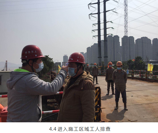 項(xiàng)目部及工地大門設(shè)立門禁,安排專人做好進(jìn)出人員登記,做好防護(hù)措施,進(jìn)出場(chǎng)做好體溫測(cè)量,體溫異常人員禁止入內(nèi),記錄相關(guān)信息后按時(shí)反饋至安全員及項(xiàng)目經(jīng)理。